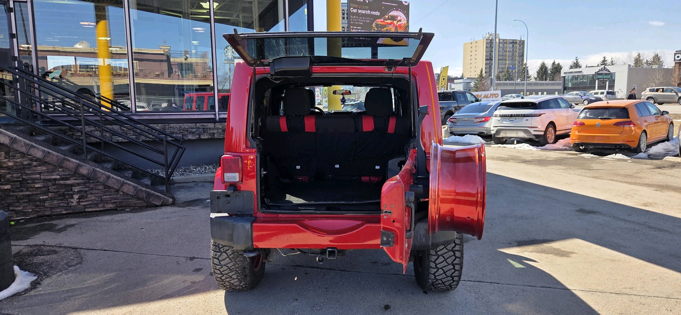 It’s a lifestyle. Finished in a striking red exterior with stylish alloy rims, this Jeep stands out everywhere it goes. Built in the United States and engineered for durability, it’s ready for both off-road exploration and everyday driving. Under the hood, the reliable 6-cylinder engine delivers strong, consistent performance, while the Unlimited (4-door) configuration provides added space and practicality for passengers and cargo. What truly sets this Wrangler apart is the experience — the roof and doors are fully removable, giving you that open-air driving feeling that’s unbeatable in the summer. It’s fun, unique, and something no ordinary SUV can offer. Key Features: