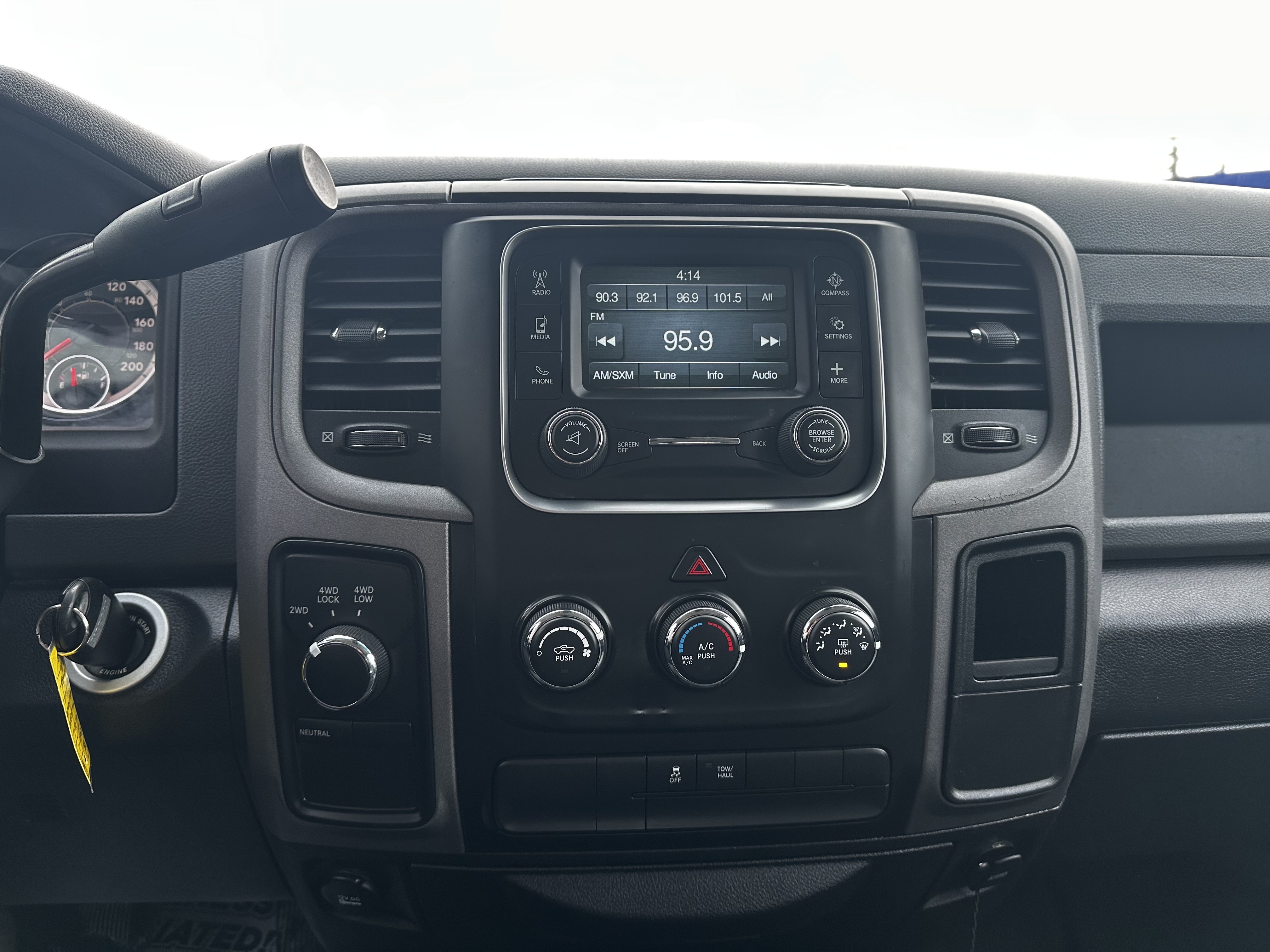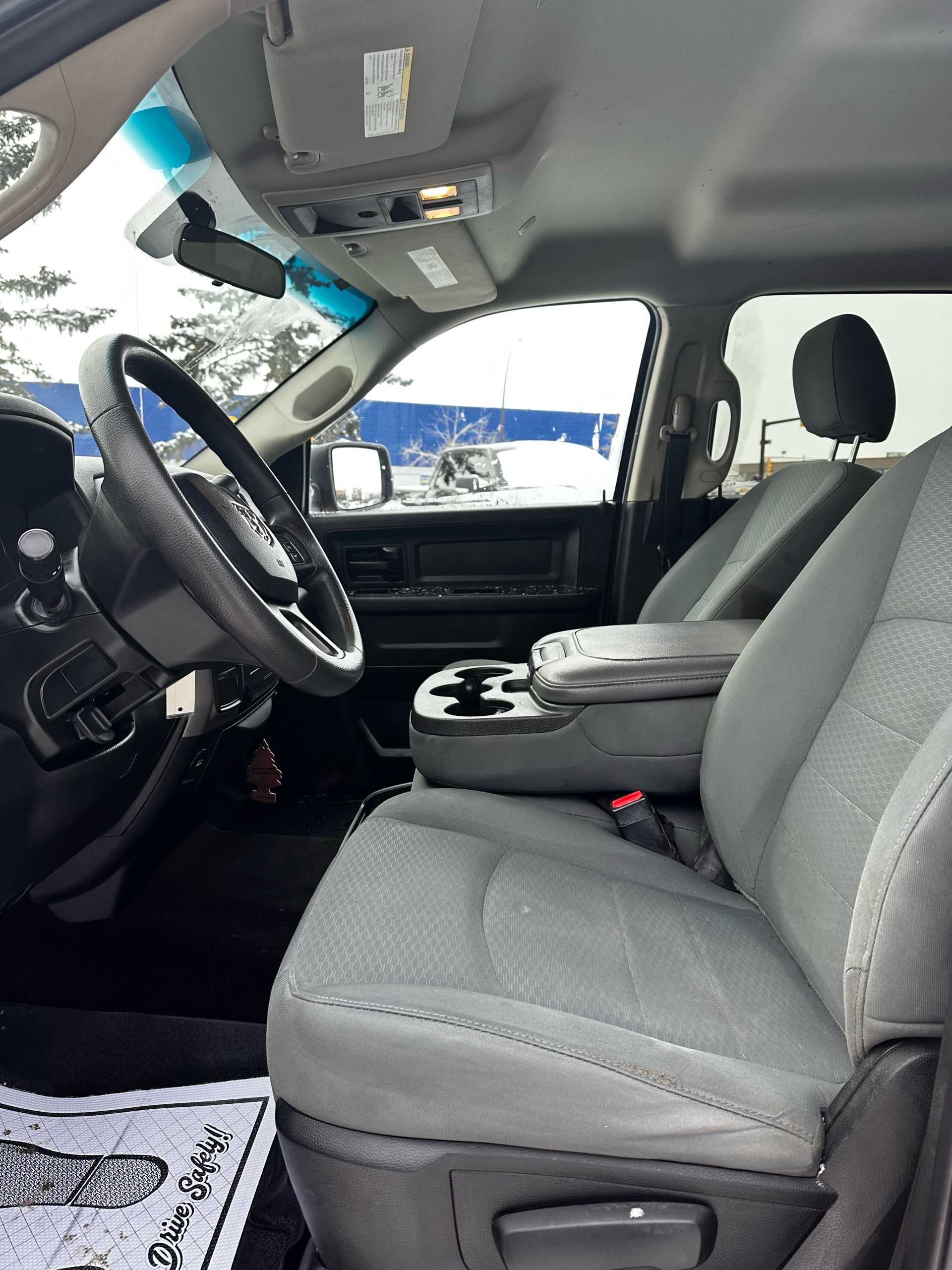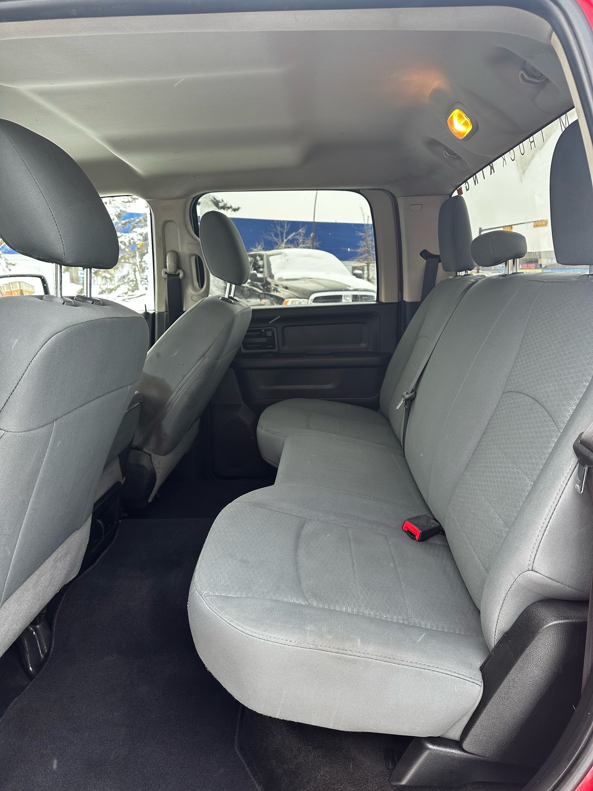 Inside, the truck features comfortable and durable cloth seats designed to provide ample support during long drives or demanding workdays. The cabin offers a straightforward and functional design, with well-organized controls and plenty of storage options to accommodate work tools or personal belongings. Standard technology includes a Uconnect infotainment system with AM/FM radio and optional Bluetooth connectivity to ensure convenience and connectivity on the go.