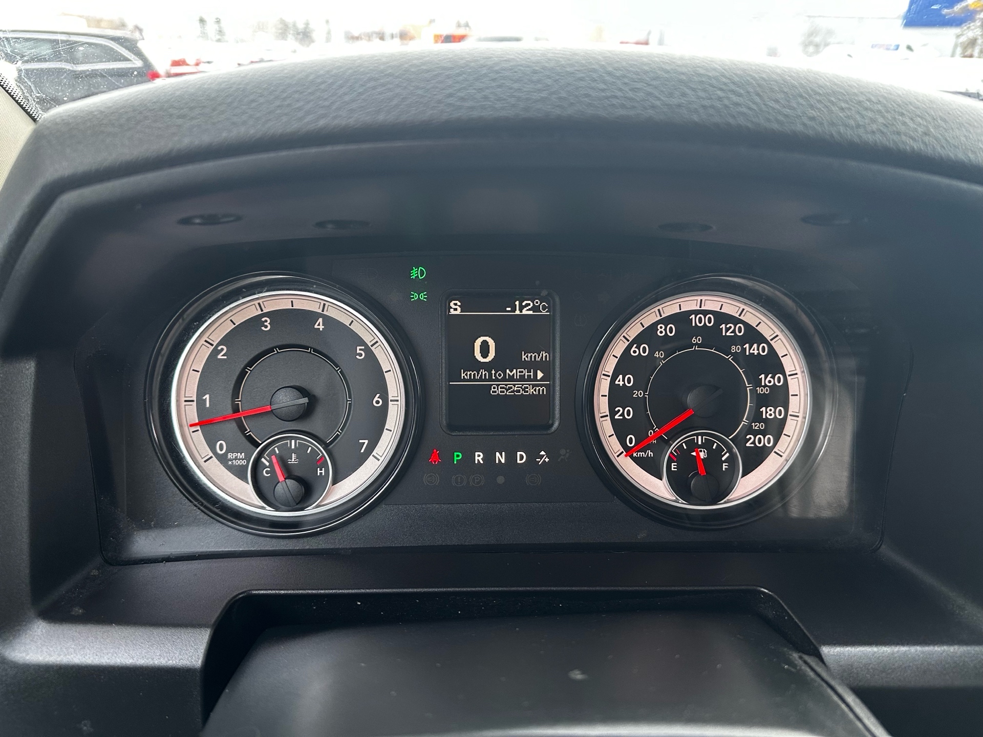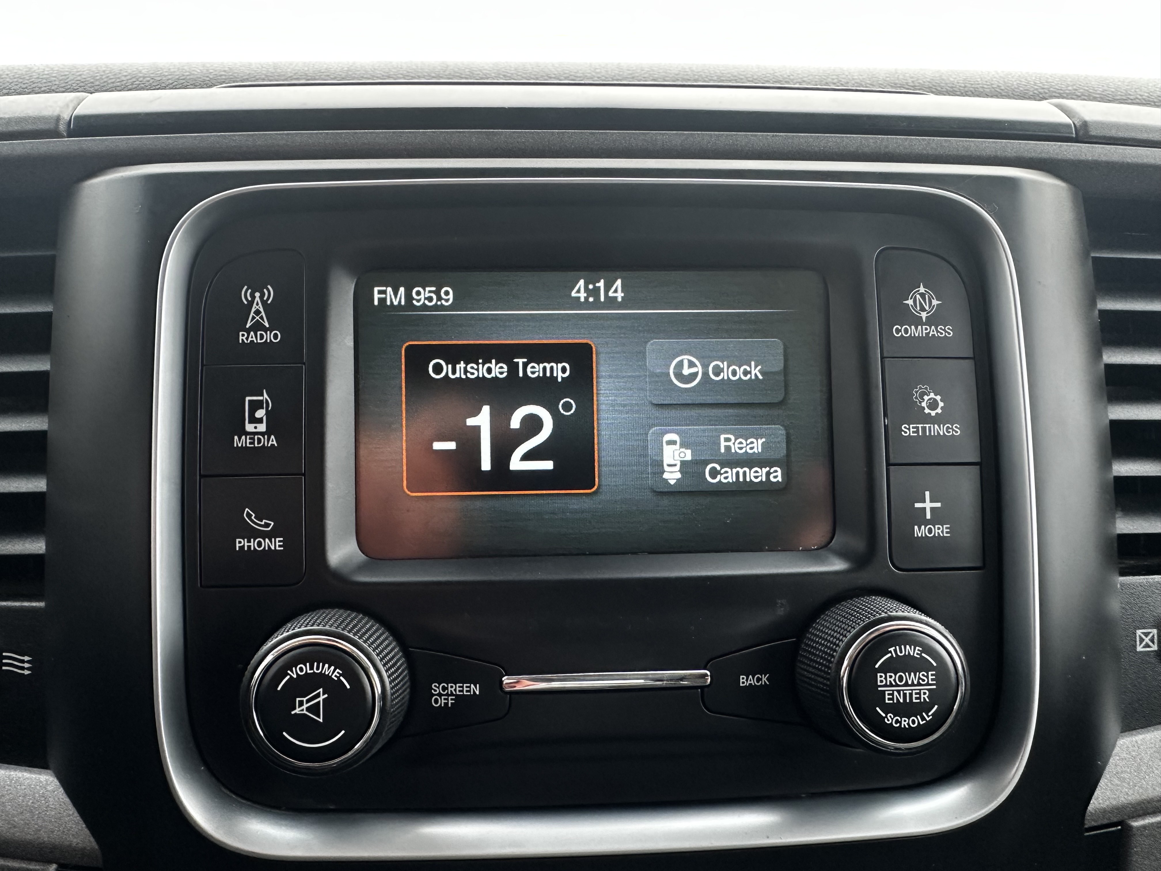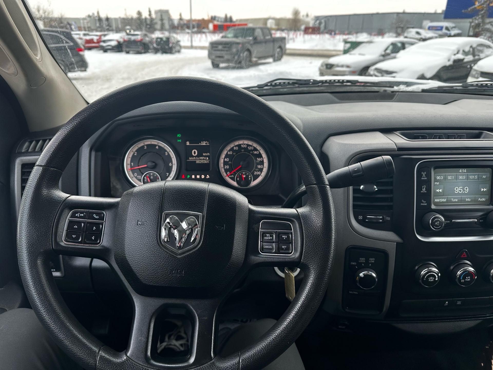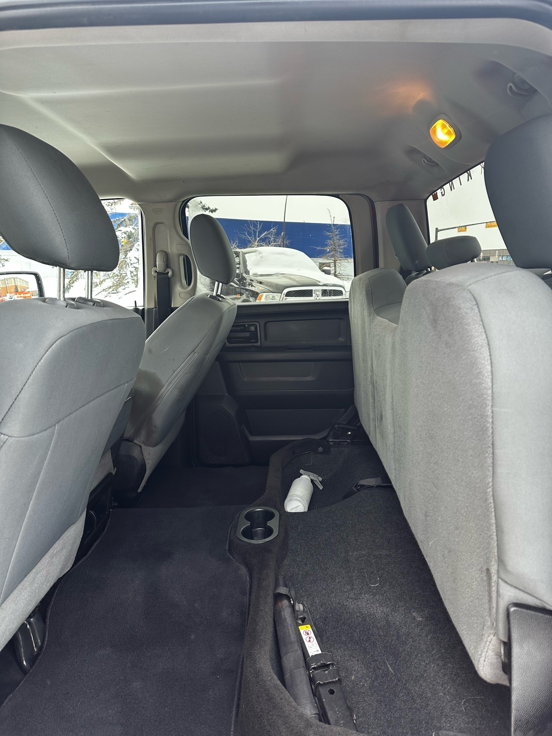 Inside, the truck features comfortable and durable cloth seats designed to provide ample support during long drives or demanding workdays. The cabin offers a straightforward and functional design, with well-organized controls and plenty of storage options to accommodate work tools or personal belongings. Standard technology includes a Uconnect infotainment system with AM/FM radio and optional Bluetooth connectivity to ensure convenience and connectivity on the go.